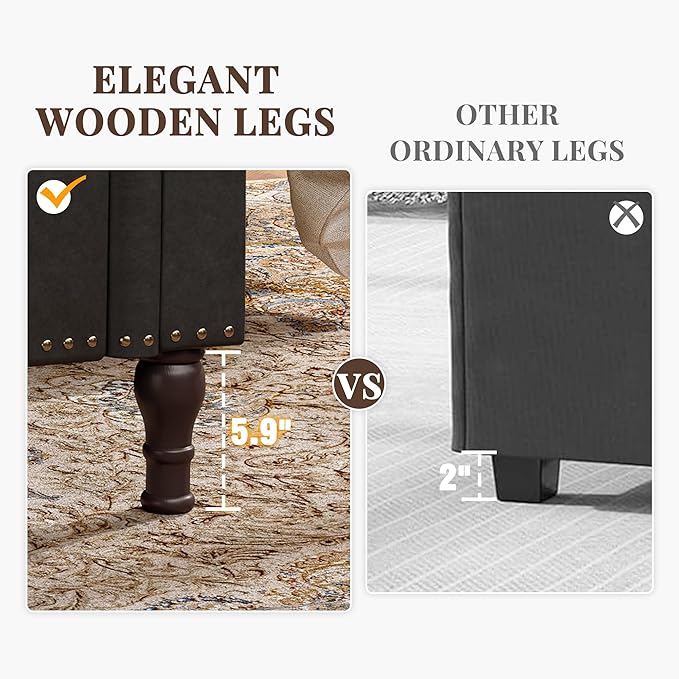 - 【STRUCTURAL STABILITY】The bedroom bench is made of multiple layers of wood panels, providing stable support. The bottom features 5.9 inch high solid wood legs, which are aesthetically pleasing and stable while protecting the floor from scratches. The internal gas rod support structure ensures smooth and steady opening and closing of the seat surface.