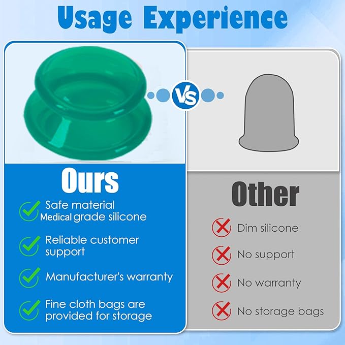 - Classic Cupping Therapy No Side Effect: 5 minutes of cupping therapy is equivalent to half an hour of deep massage. Good for improving blood circulation and detoxify the body.
