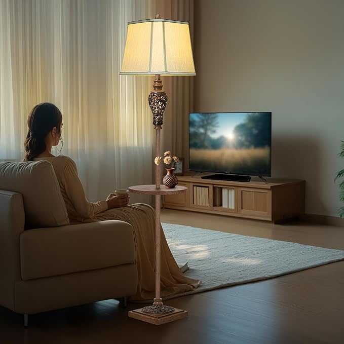 - UNIQUE DESIGNS: With a luxurious vintage look, this floor lamp is specially designed with a beautifully hollow carved leaves base and nightlight. The bronze and faux woodgrain finish on the resin and metal lamp body adds retro classic touch to your decor.