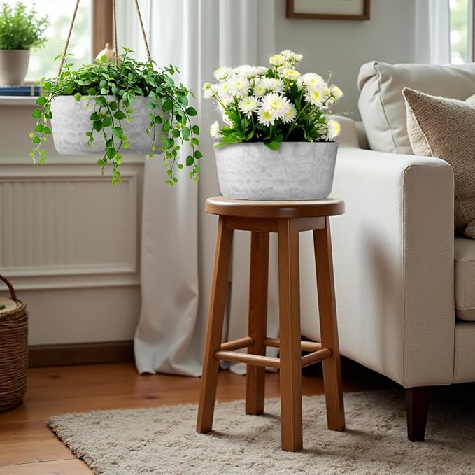 - Sturdy and Lightweight: These cylindrical-shaped hanging planter are made of durable plastic and natural stone powder, lightweight but durable for long-lasting use, suitable for both indoor and outdoor use.