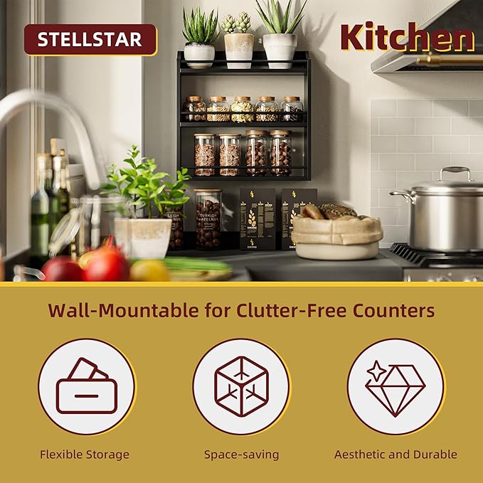 - CABINET, COUNTER, OR WALL, WHEREVER YOU NEED IT! : This freestanding spice rack offers flexible placement options. Set it on your kitchen counter, tuck it into the pantry, or mount it on the wall. It keeps your surfaces clutter-free and maximizes cabinet space, so every inch is used for what matters most