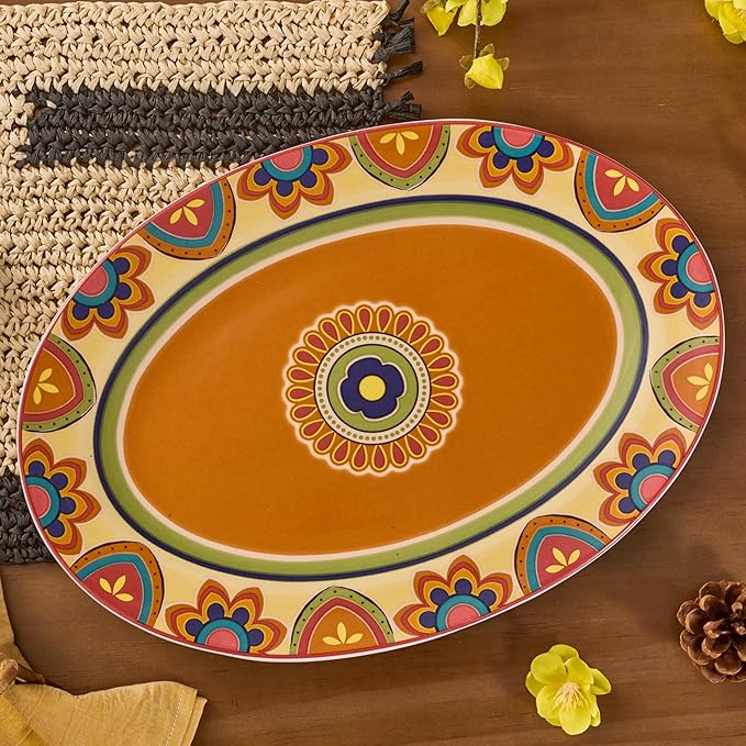 Bico Tunisian 16 plus 14 inch Oval Platters Set, Set of 2, Microwave and Dishwasher Safe, for Serving Fish, Chicken, Turkey
