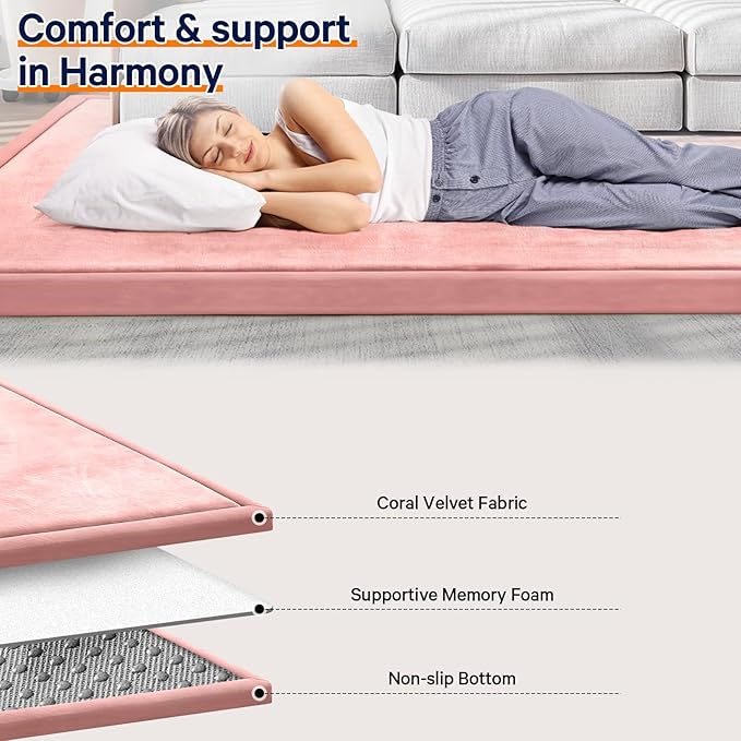 - đŁSAFE & COMFY: Our baby play mat is made of 100% coral velvet material and filled with high-quality 3.5cm thick memory foam,eco-friendly and durable, providing a safe and comfortable play area for your babies, without worrying about them hurting themselves on hard floors.The surface of this tummy time mat is velvet cover, which is not only soft and comfortable to touch, but also has a good cushioning effect.