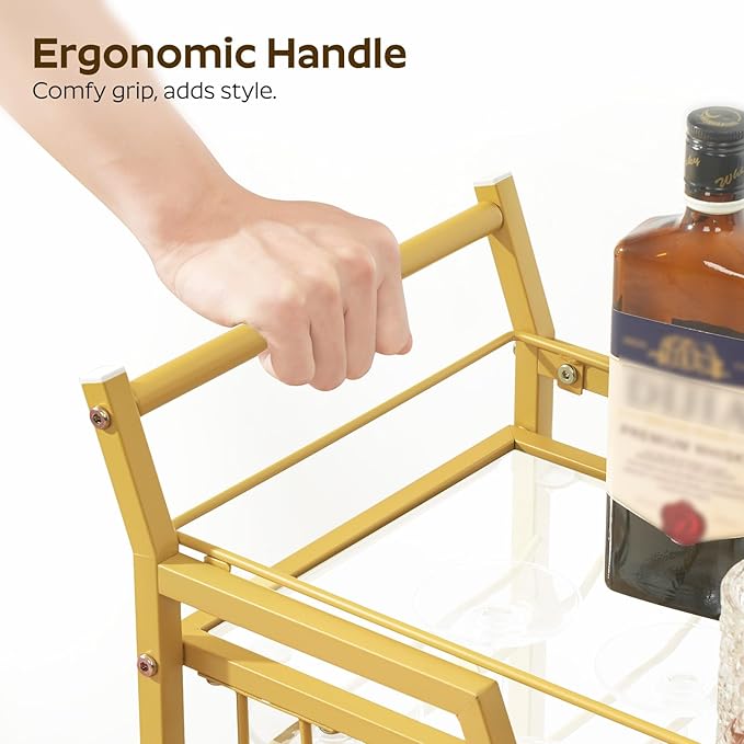 Bar Cart, 3-Tier Bar Cart for The Home, Home Bar Serving Cart with Glass Holders, Beverage Cart for Kitchen, Dining, Party Room, Gold BC03GD