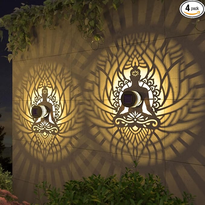4 Pack Solar Fence Lights Metal Solar Powered Outdoor Wall Deck Step Lights Zen Theme Waterproof Fence Light for Garden Post Patio Backyard Yard Decor, Gardening Gifts for Women Mom Grandma