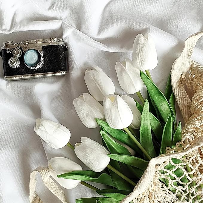 - [High-Quality Durable Material]: Made of high-density PU material, perfectly replicating the natural texture of tulips. The matte finish avoids cheap plastic shine. Unlike real flowers, these artificial tulips are fade-resistant and easy to clean, making them a sustainable and low-maintenance decorative solution for weddings, Easter, or daily home decor.