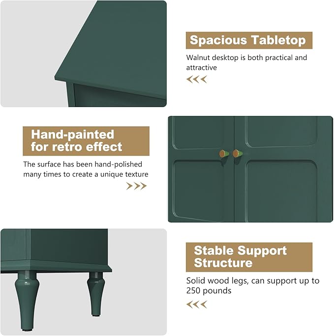 - 【Multiple Uses】: This green TV stand can be used as a Media Entertainment Center and a multifunctional storage cabinet. Its light design with clean lines and gold handles makes it a perfect addition to your living room, or anywhere else.