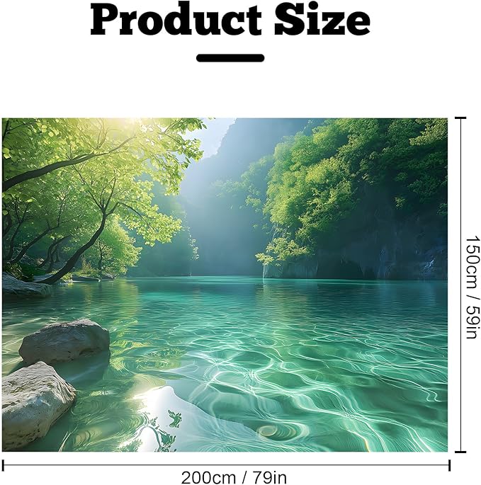 BSFHH Nature Tapestry Forest Tree Sea Cave Wall Hanging, Stream Through Rainforest Landscape Wall Art Tapestry for Bedroom Living room (Lake View, 79"×59", Unframed)
