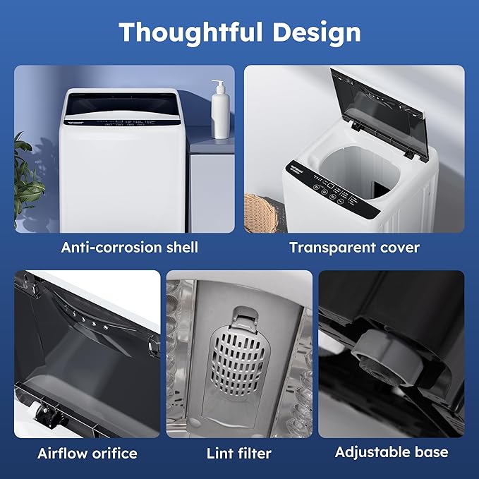 - Compact Size Design: The washing machine features a compact size (50x50x78.5cm), making it perfect for home, apartment, living room, dorms, RV.