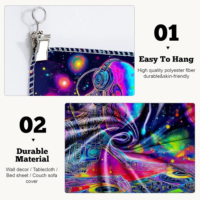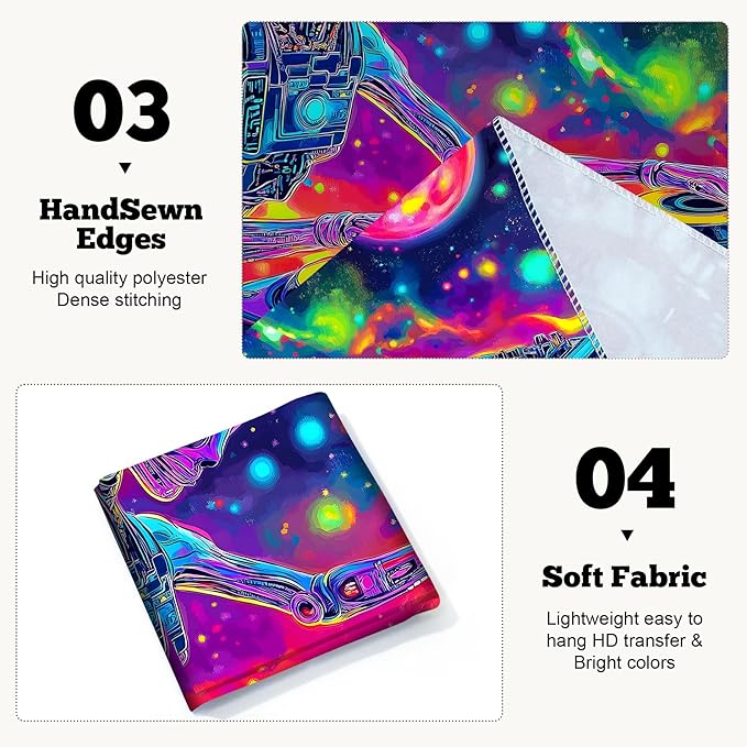 - Versatile Tapestry - With its durable materials and unique design, this blacklight tapestry can serve as a wall hanging tapestry, indie room tapestry, curtain tapestry, dorm room tapestry, ceiling tapestry, bedroom tapestry, glow-in-the-dark artwork or even a picnic blanket.