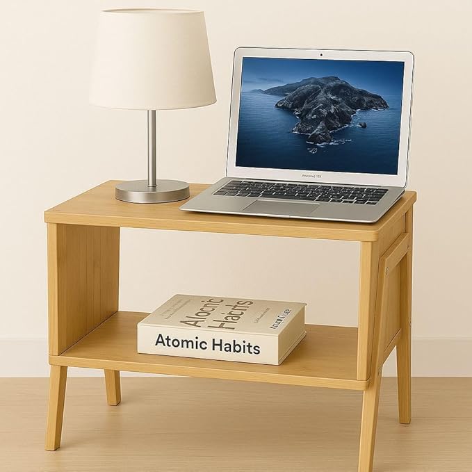 - Natural Bamboo Finish – Made from durable, eco-conscious bamboo with a smooth, warm wood tone that complements modern, boho, or Scandinavian decor. [natural wood end table, bamboo furniture, sustainable home decor]