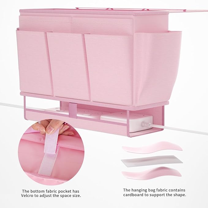 - Multi-functional Use: The bottom of the bed caddy is designed with a power board storage space, equipped with elastic lanyards and Velcro fixing straps, which are convenient to adjust the bottom space, better adapt to the use of the power board, meet the needs of charging and say goodbye to the trouble of wires.