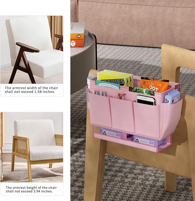- Product Size: The overall size of the bed storage caddy: L13.78*H7.88*W3.94inch, pocket size: H5.52*W4.93inch, bedside storage is suitable for railing width less than 1.58inch.