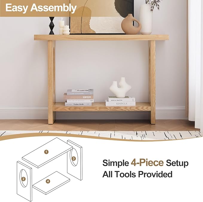 - 【Multifunctional & Space-Saving】 - Featuring a spacious 47.2" x 13.8" top and a lower shelf, this modern natural wood entryway table provides ample storage for decor, keys, books, or collectibles. Perfect as a sofa table, entryway organizer, or hallway accent