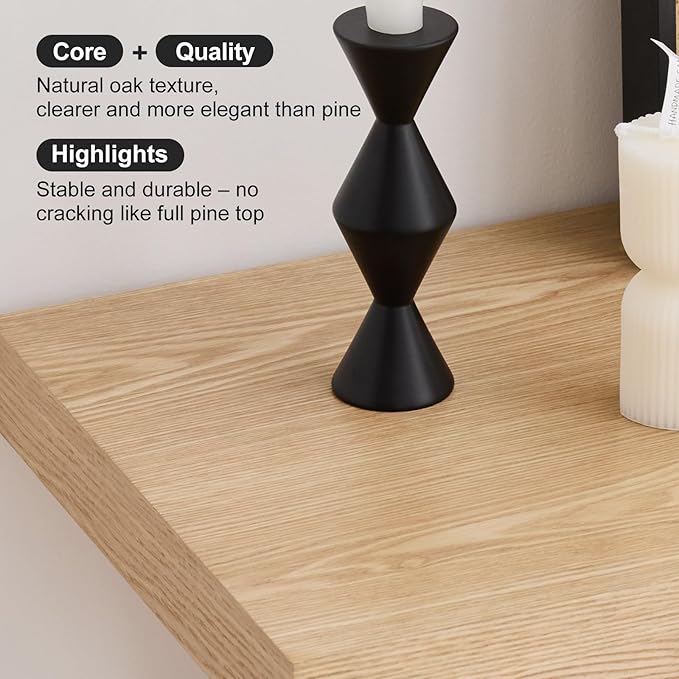 - 【Natural Solid Wood Grain】 - Crafted with premium Solid Oak Veneer and high quality MDF, this modern wood console tables for entryway showcases unique, unrepeatable wood grain patterns that bring rustic charm and timeless elegance to your entryway, living room, or hallway
