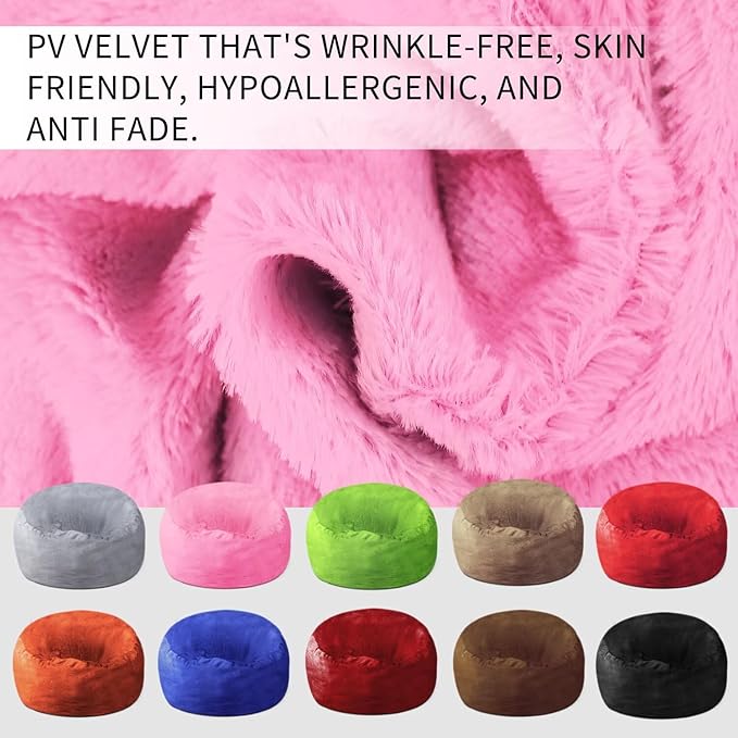 - 【Comfy,Durable,And Easy To Care】Our Giant Bean Bag Cover Is Made Of Super Soft, Furry Pv Velvet That'S Wrinkle-Free, Skin Friendly, Hypoallergenic, And Anti Fade. It Features Double-Stitched Seams And A Two Layer Zipper For Enhanced Durability And Long-Lasting Use.