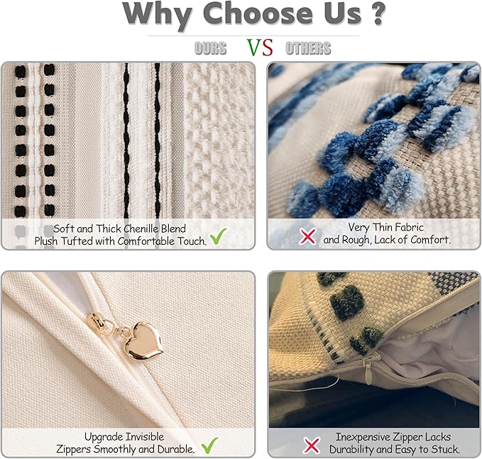 - PREMIUM QUALITY FABRIC: Made from a high-quality chenille and woven polyester blend, the throw pillow covers are ultra-soft and durable. The tufted design adds texture and dimension, creating a luxurious and inviting atmosphere.