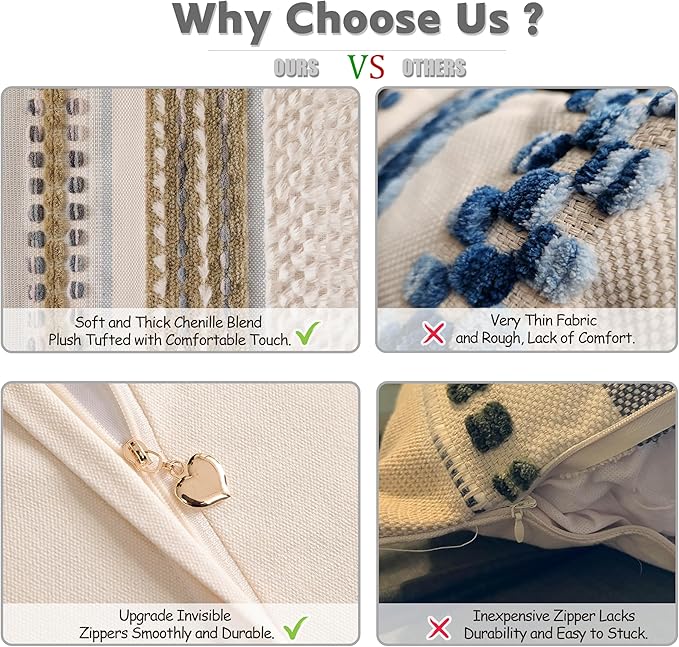 - PREMIUM QUALITY FABRIC: Made from a high-quality chenille and woven polyester blend, the throw pillow covers are ultra-soft and durable. The tufted design adds texture and dimension, creating a luxurious and inviting atmosphere.