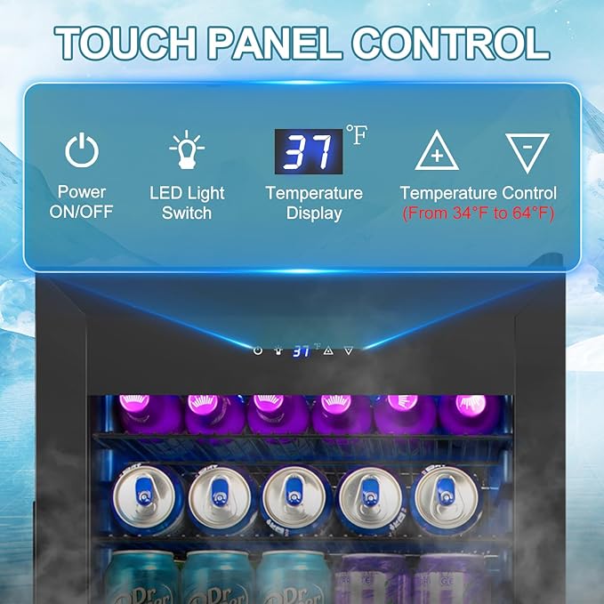 - SMART TOUCH CONTROL PANEL: The mini beverage fridge features a user-friendly touch control panel for easy temperature adjustments (34° F–64° F), giving you full control over your cooling experience and complementing modern lifestyles.