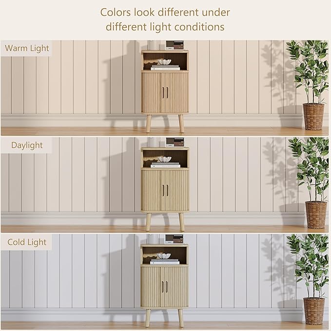 - 【Space Saving Design】: Due to our precision track rails design, the tambour sliding doors of the end tables effortlessly slide sideways to maximize space efficiency. This compact design eliminates the issue of external door looking cluttered and taking up space. This side table with storage combines stylish and practicality, is a perfect addition to your living room, bedroom and home office.