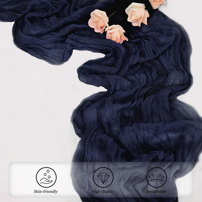 - Cheesecloth Table Runner Size: You will receive 20 navy blue cheesecloth tablerunner, each measuring 20 x 120 inches. The quantity is sufficient for you to decorate various romantic occasions. It can decorate most shaped tables, such as rectangular tables, round tables, and cocktail tables. It is long enough to decorate a large table and be placed perfectly and elegantly on the tabletop, adding a romantic atmosphere to your occasion.
