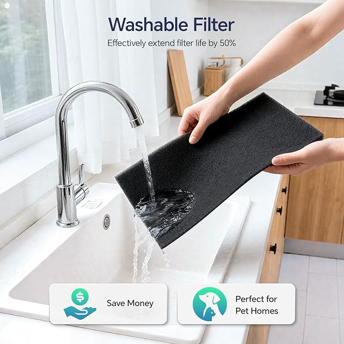 - Advanced 5-Stage Filtration: Our hepa air purifier features a powerful 5-stage system, It includes a washable filter that extends the HEPA filter's life by 50%, a pre-filter, a true HEPA filter, an activated carbon filter, and a final filter, to capture 99.97% of airborne particles down to 0.3 microns. It's a game-changer for anyone dealing with pollen, dust, providing a noticeably cleaner home.
