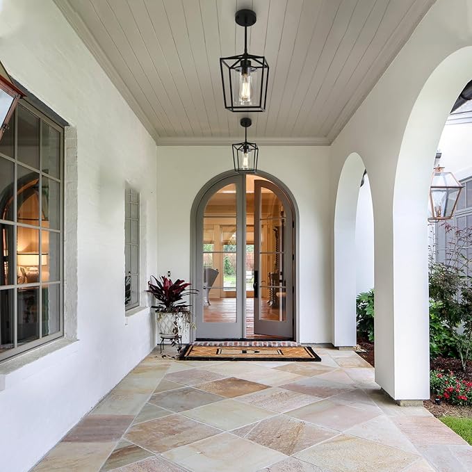 - 【Industrial Pendant Light】This black pendant lights is made of sturdy metal frame and clear glass lampshade, gives off soft light and gets modern statement on a classic lantern shape. This sleek and minimalistic pendant lighting for kitchen island would be a focal point in your kitchen island, dining room, front porch, hallway, foyer, entryway, ect.