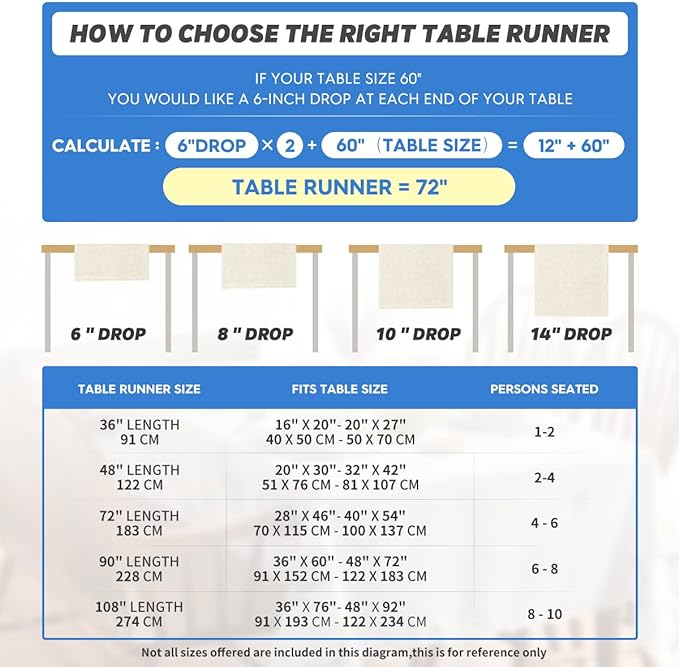 - Fits Table Size : This table runner is 13 x 48 inch, appropriate for a table that can seat 2-4 people, better match your table and give you a delightful dining experience