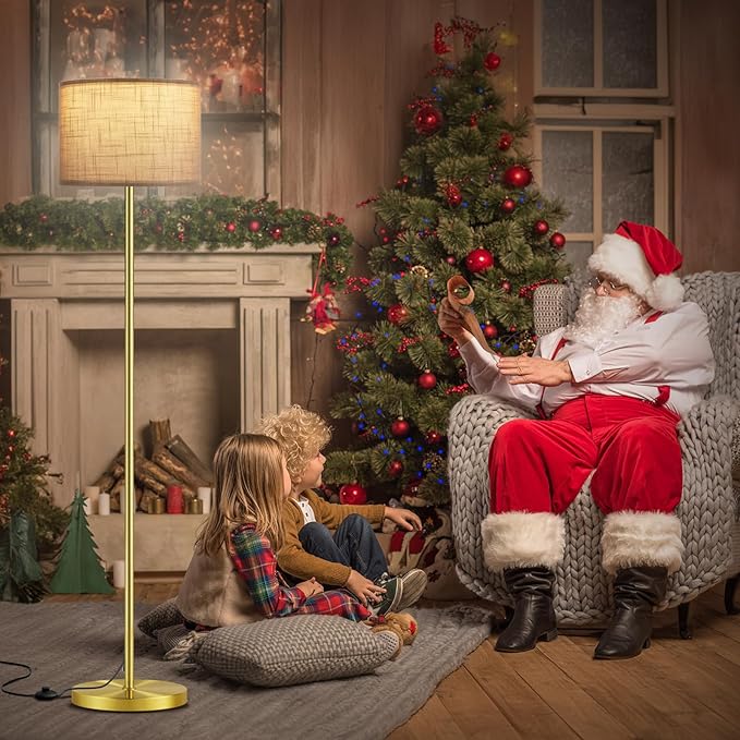 Ambimall 60'' Modern Floor Lamp with Shade, Tall Lamps for Living Room, Bedroom, Office, Dining Room, Linen Grey Shade with Brushed Gold Pole(Without Bulb)