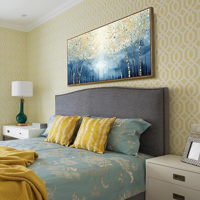 amatop Large Framed Abstract Canvas Wall Art Navy Blue Art Print Modern Nature Tree of Life Artwork Birch Contemporary Landscape Picture for Office Living Room Bedroom Hallway Home Decor 48x24 Inch
