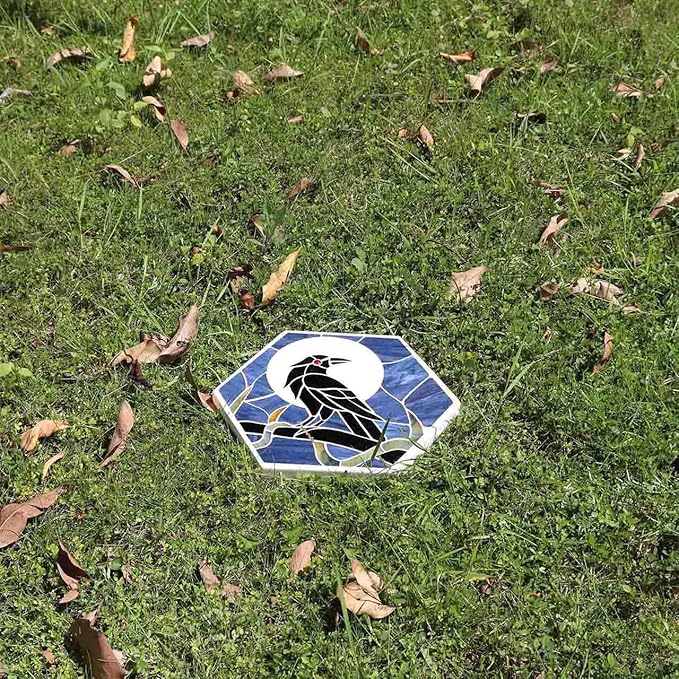 Bieye MSS004 Tiffany Style Stained Glass Mosaic Decorative Stepping Stone for Garden Decor (Raven, 13" Hexagonal)
