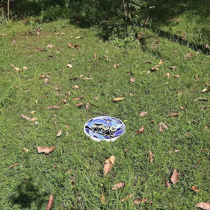 - 🦉 Double Owl Mosaic Design – Features two expressive owls sitting on a branch, made with real stained glass, creating a stunning visual impact for any garden.