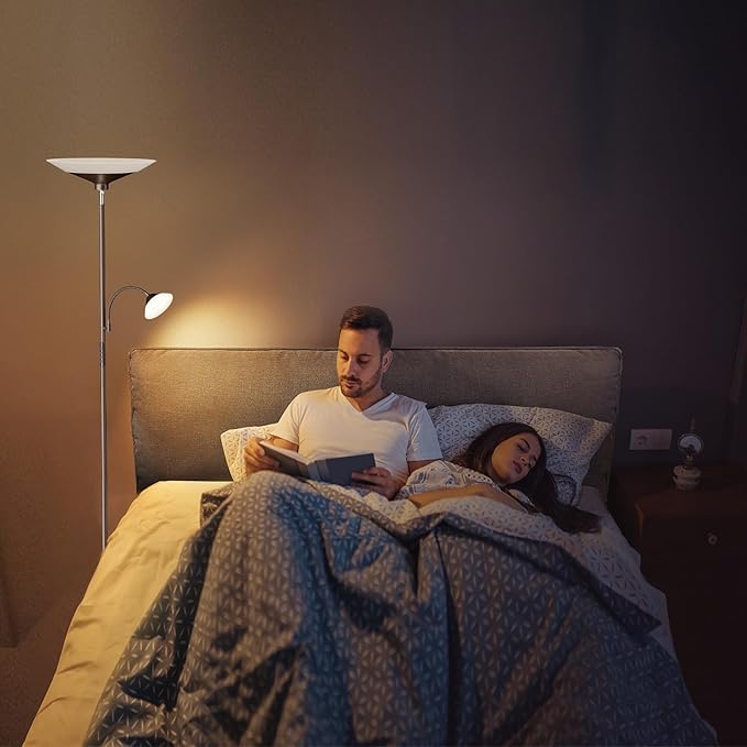 - 【Flexible & Rotating Standing Lamp】With it's flexible lamp head, the top light can be rotated to 270°to be a uplighter or downlight, the reading light with gooseneck is 360° rotatable; direct the lighting where it's needed.