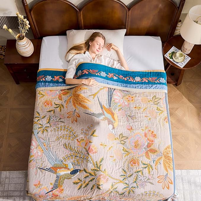 - Unique Farmhouse Style:XIBLC Boho Blanket Throw has a very chic and vintage look. Elevate your space with a chic farmhouse aesthetic. Our bohemian muslin blanket showcases charming animal or floral geometric patterns on the front and back, bringing together classic colors and a variety of elements.