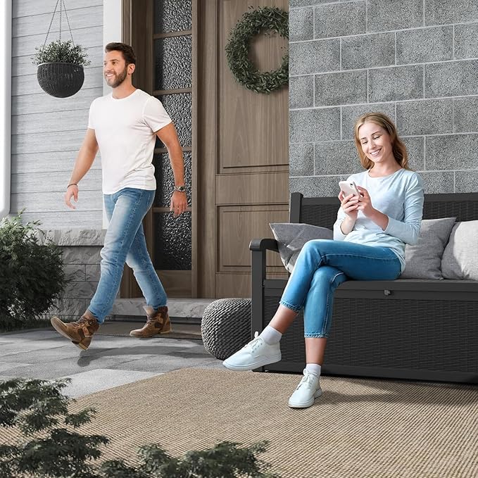 - Durable & Weather-Resistant: Crafted from weather-resistant resin, this waterproof outdoor storage bench is resistant to rust, water, and UV rays. Whether used as a deck box bench or a deck storage bench, it comes with reinforcement bars to withstand various outdoor weather conditions, ensuring long-lasting performance.