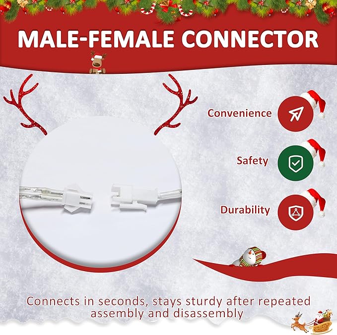 - Weather-Friendly Design: This freestanding holiday display is equipped with 16.4FT water-resistant cord and lights, the light bulb is waterproof and snow proof, so you don't have to worry about safety issues. Although, it has 100 LED lights, it’s still energy-saving. Besides, pre-strung fairy lights remain cool to the touch in constant warm white
