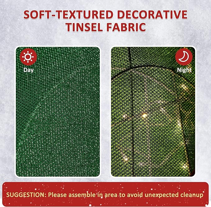 - Premium Quality: Our lighted Christmas decoration is made of a high quality powder-coated steel frame which ensures the long service life. It is durable enough for you to use year over year and it wouldn’t break easily. Decorative tinsel fabric gives you soft feeling while touching it