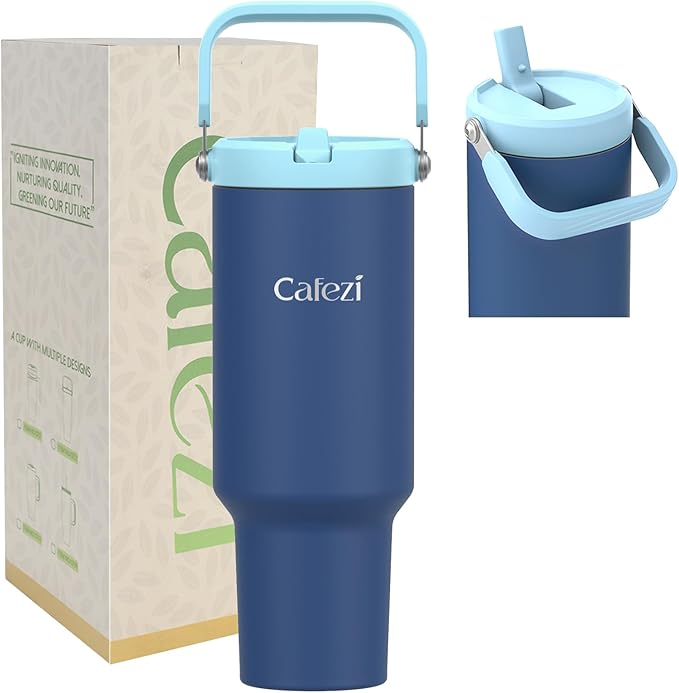 40 oz Flip Straw Tumbler, Stainless Steel Vacuum Insulated Tumblers with Flip Straw and Top Handle, Reusable Insulated Water Bottle for Home, Office, Leakproof, Fit in Cup Holder