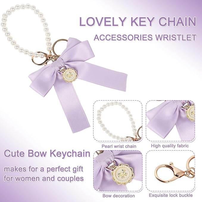 BELSITA Stanley Cup Accessories Set, Bow Pearl Chain Braided Design Water Bottle Handle Strap, Silicone Stanley Cup Boot, Stanley Charms for Stanley Cup 30/40oz Tumble (Purple)