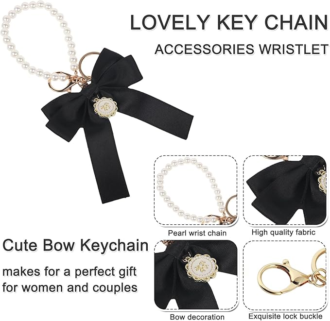 BELSITA Stanley Cup Accessories Set, Bow Pearl Chain Braided Design Water Bottle Handle Strap, Silicone Stanley Cup Boot, Stanley Charms for Stanley Cup 30/40oz Tumble (Black)