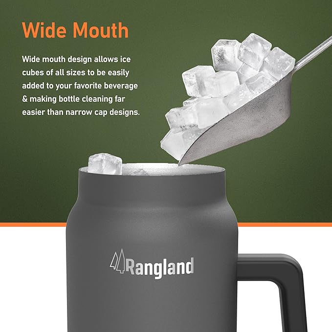 - 64oz Stainless steel insulated tumbler with handle, the perfect large-capacity water bottle for keeping your drinks hot or cold all day long.